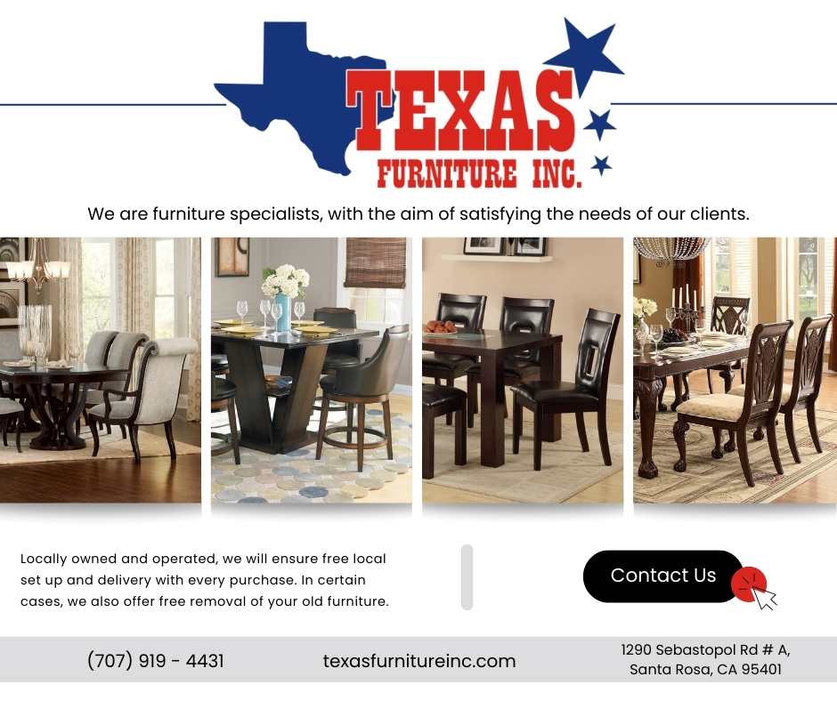 Visit your friends at Texas Furniture at our furniture stores at 1290 Sebastopol Rd # A,Santa Rosa, CA 95401.