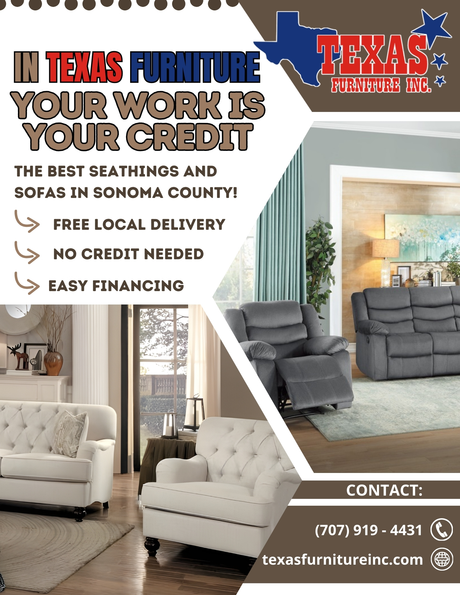 Visit your friends at Texas Furniture at our furniture stores at 1290 Sebastopol Rd # A,Santa Rosa, CA 95401.